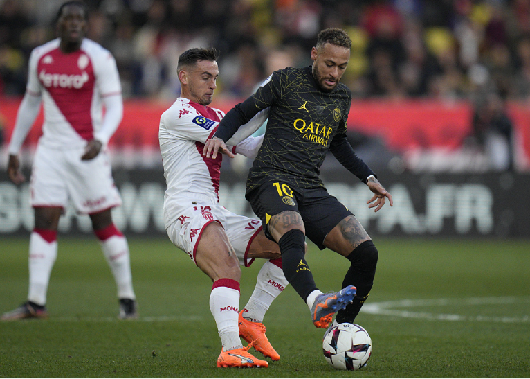 足球更新:巴黎圣日耳曼的内马尔在吉祥坊 Ligue 1 与摩纳哥的比赛中控球